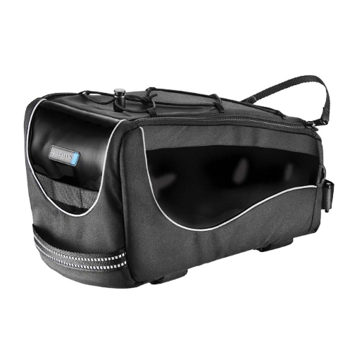 流線型貨架上袋,在外側有提把、可調整式肩帶,及頂部鬆緊繩設計。